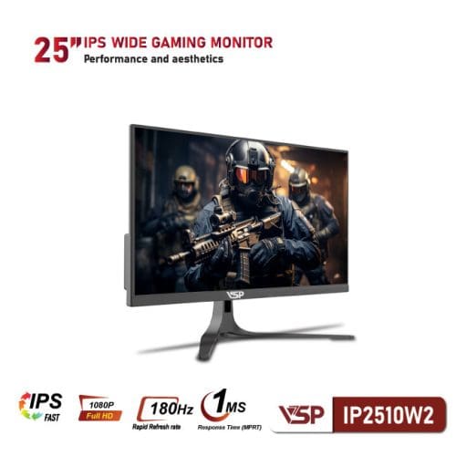 Với tần số quét 180Hz của VSP IP2510W2 giúp bạn không cần phải ép xung màn hình mà vẫn chơi game hoàn hảo và chỉnh sửa video có khung hình cao. Với khung hình được tối ưu hóa, mượt mà đem đến lợi thế cho bạn khi chơi game với những chuyển động cực nhanh.